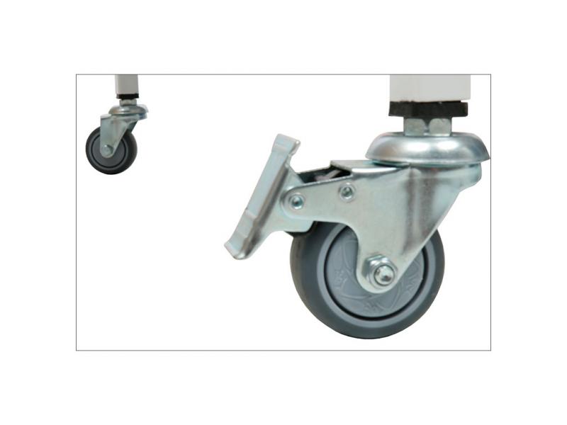 - столик процедурный имеет 4 колеса из немаркой резины, D= 50 мм. Два колеса снабжены тормозом