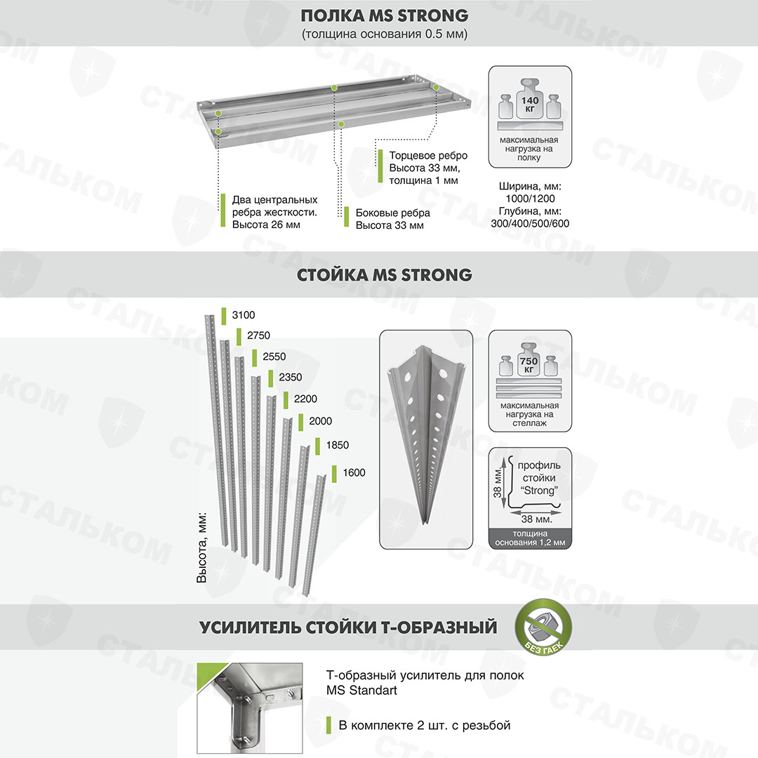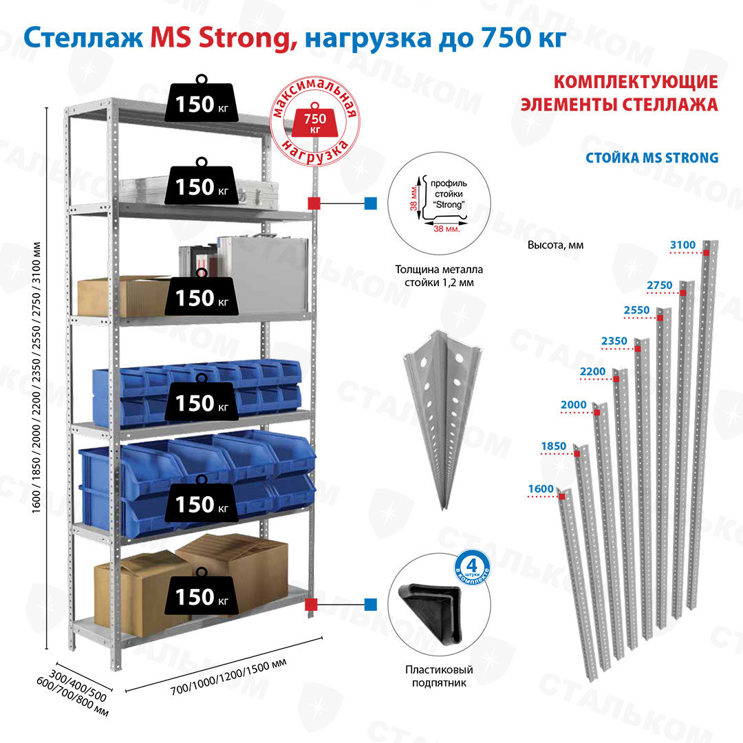Купить стеллаж MS Strong 2750х1200х400, 6 полок в Белорецке с доставкой